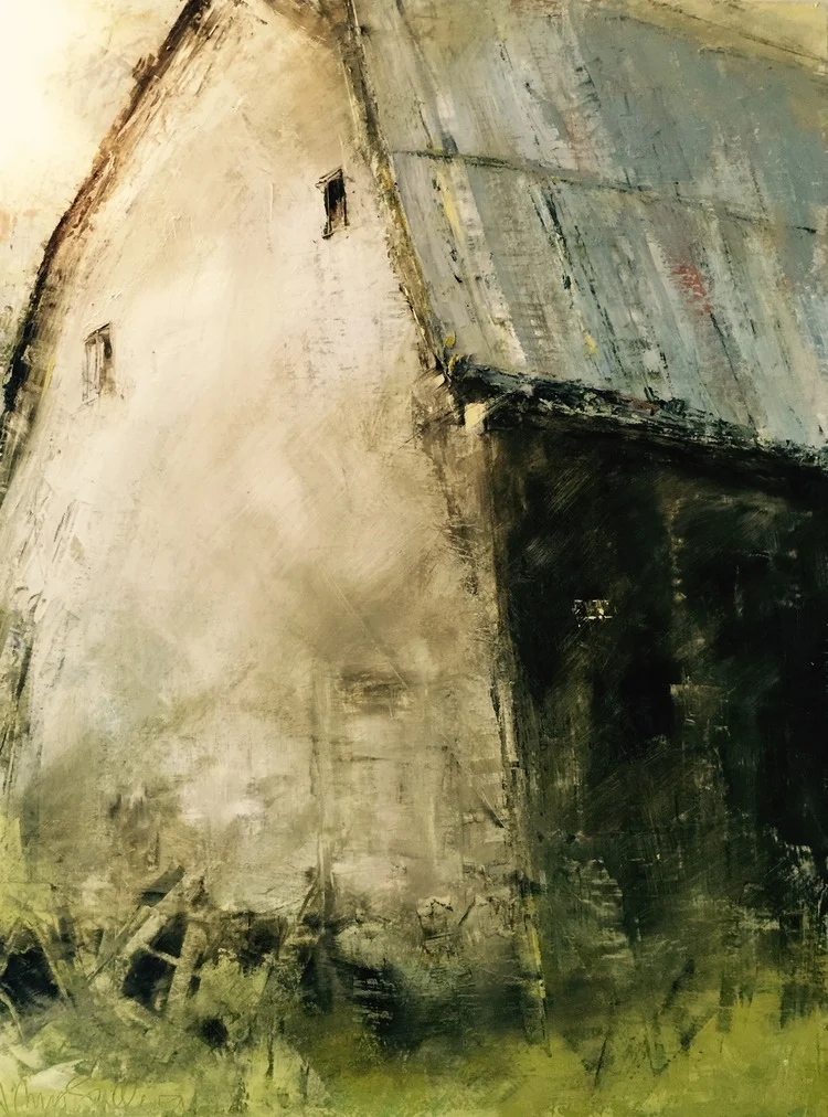 As a quintessential part of the South’s economy for generations, the tobacco industry carved a deep place in the region’s soul. The barns where tobacco leaves were hung to cure after harvest dotted the landscape in numbers as high as half a million until the mid-20th century in North Carolina alone. Today, fewer than 50,000 still stand in the state. These soulful paragons of the past hold a special fascination for Amy as she honors and preserves them in intriguing oil paintings.